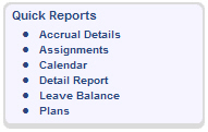 The criteria pre-configured will vary based on the type of each report (e.g. the Leave Balance quick report uses the current calendar year, always show the project title, limits output to only Leave projects, etc.).