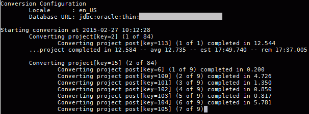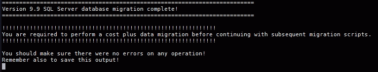 If the step 1 output includes the following statement, "You are required to perform a cost plus data migration before continuing with subsequent migration scripts.", you will need to run the java conversion utility. If that statement is not included in the output message, you can continue with step 3 to run the unanet100migrate.sql script.