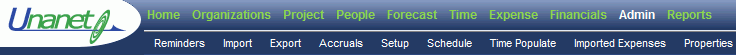 Depending on each user's roles, the following sub-menu items may be available under the Admin main menu item: