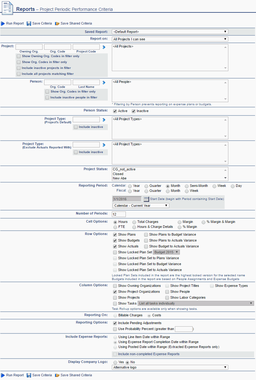 This report can be run to provide a forecast of cost or revenue information in a Daily, Weekly, Monthly, Semi-Monthly, Quarterly or Yearly layout. Using the available selection criteria, you can summarize the output by a variety of attributes (eg. by Project, Person, Labor Category, Expense Type, etc), the output can include Hours, Bill, Cost, Margin, % Margin or FTE information, and a capability to displayed results at various levels within your Task WBS.