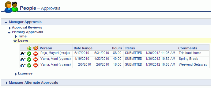 Manager Approver alternates can approve leave requests on behalf of their alternate managers.